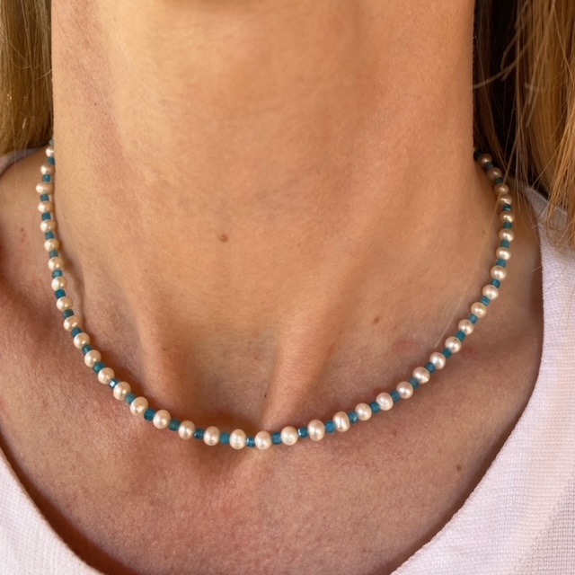 COLLAR PERLAS CULTIVADAS Y CUARZO AZUL